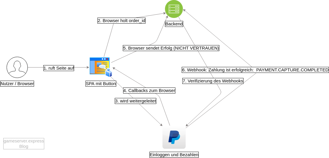 Besser ist da die von Paypal empfohlene Variante: Man verwendet immer noch einen Button, richtet gleichzeitig aber Webhooks ein. Dabei senden die Paypal Server eine Anfrage direkt an den eigenen Server bzw. das eigene Backend. Je nach Typ des Hooks kann man die entscheidenden Informationen direkt aus diesem Payload entnehmen. Wichtig ist nur, dass man diesen vorher noch verifiziert.