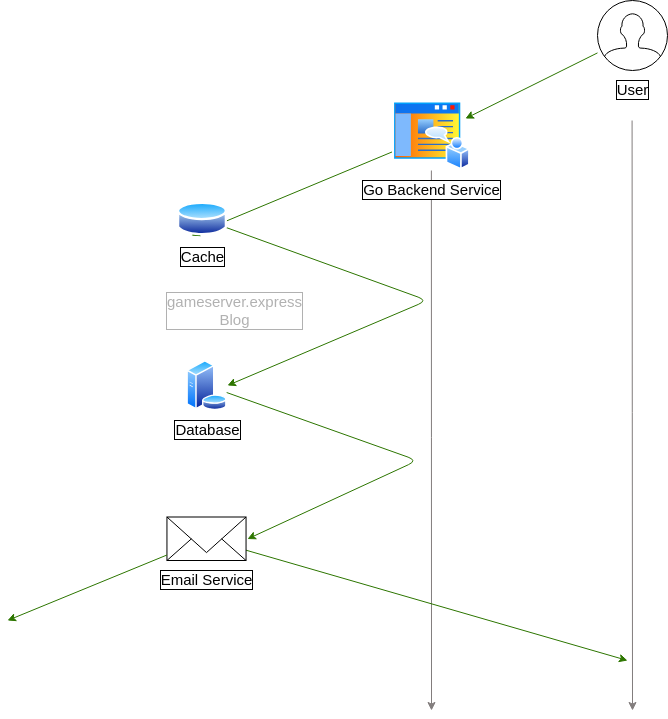 Betrachten wir uns hierzu einmal folgenden Fall: Ein Anwender schickt eine Anfrage an einen Go-Service. Dieser überprüft zunächst einen Cache mit dem Inhalt der Anfrage. Im Cache findet er nicht das Gewünschte. Daher muss er seine Anfrage direkt an die Datenbank richten. Mit den erhaltenen Daten wird erfolgreich eine Mail verschickt, dass die Anfrage erfolgt ist. Ganz zum Schluss benachrichtigt der Go Service den Anwender über den Erfolg der Aktion. Letzteres könnte gut in Form des HTTP-Rückgabecodes passieren.